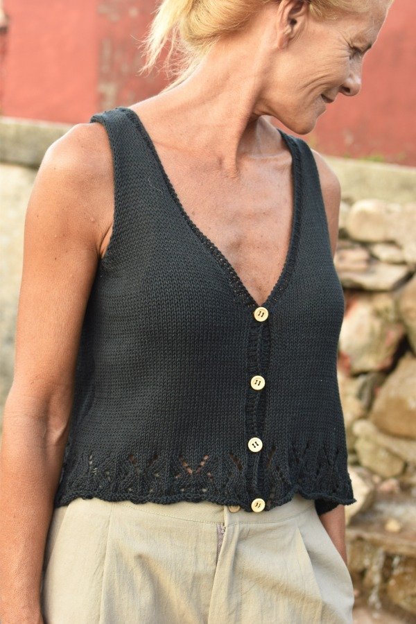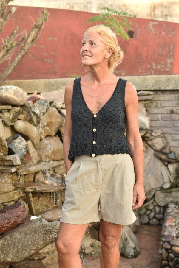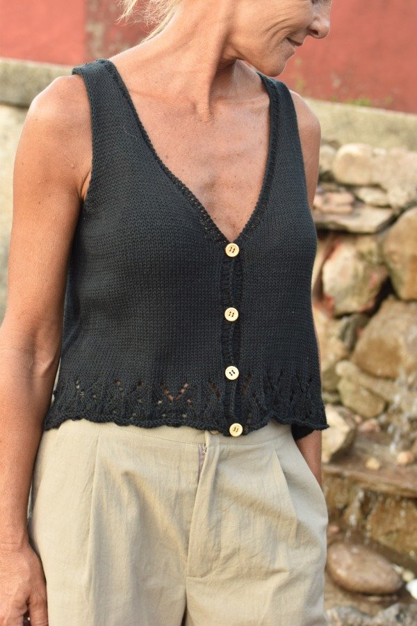 Chaleco tejido con HILO FINO de algodón, de lo más livianito, delicado y suave. Este chaleco está lleno de DETALLES que enamoran. En la parte de abajo tiene calados preciosos, también guarda con botoncitos de madera que le dan el toque. Es super fresco y también te VISTE para cualquier ocasión, es una HERMOSURA super ARTESANAL y ÚNICA! Las medidas en centímetros de la prenda cerrada y colocada sobre una superficie plana son ancho o sisa a sisa 43 cm, alto de sisa 20 cm, largo total de la prenda 46/47 cm aprox. Podés comparar con alguna musculosa/ reme o chalequito que te guste como te queda! La letra de talle es estimativa, una guía.