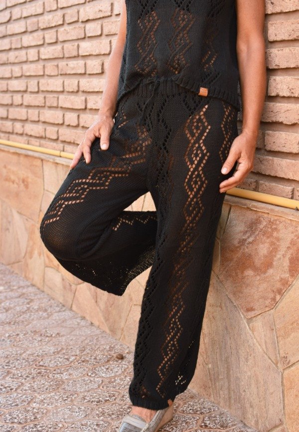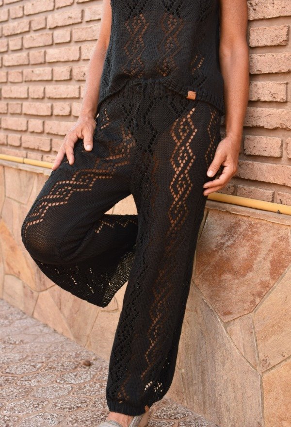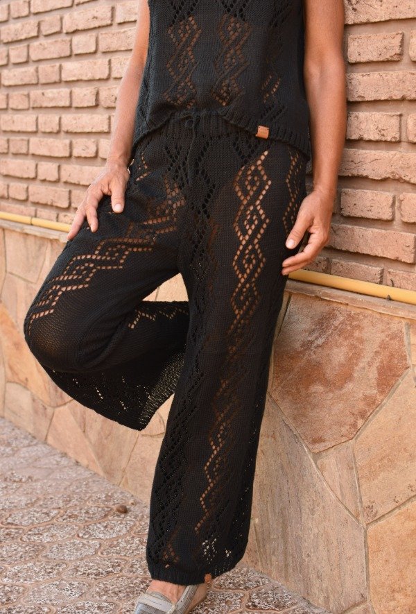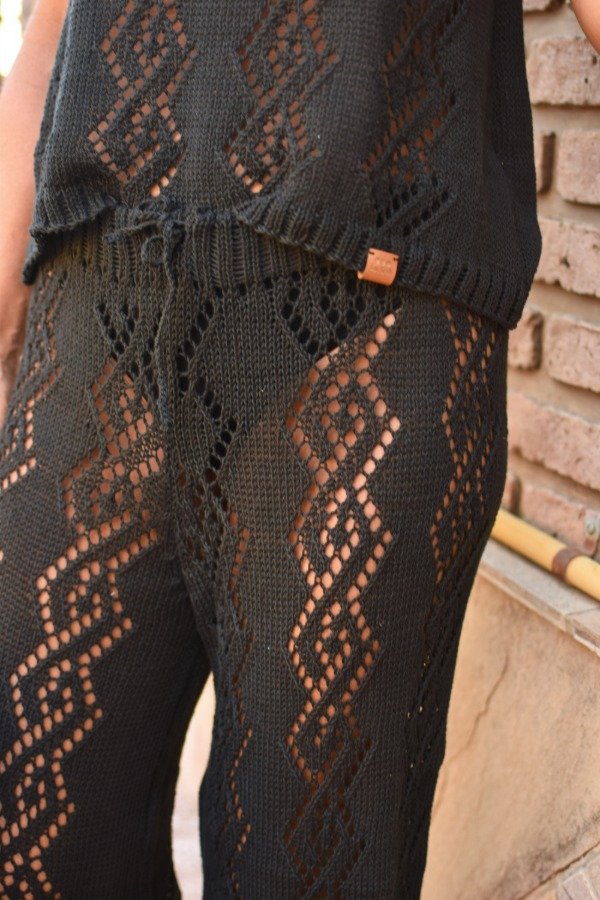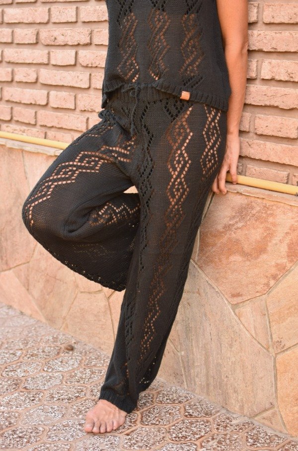 Después de taaanto trabajo y pruebas, les traemos nuestro nuevo PALAZZO TEJIDO, con calados hechos artesanalmente (días de trabajo). Está tejido con HILO FINO DE ALGODÓN, calidad premiun! Es lo más liviano y suave del planeta. El dibujo del calado es realmente una obra de arte. La forma del pantalón es verdaderamente PERFECTA. Felices de poder traer estas piezas taaan hermosas! Tiene elástico bien anchito en la cintura para mayor comodidad y una tira tejida también, para regular y sostener bien.