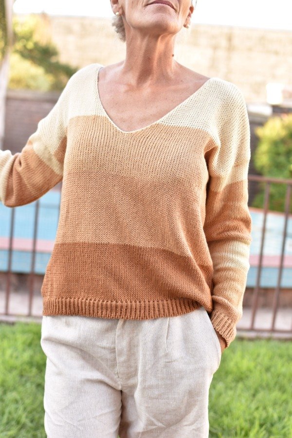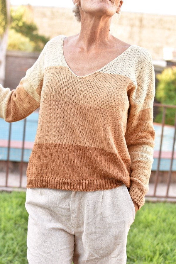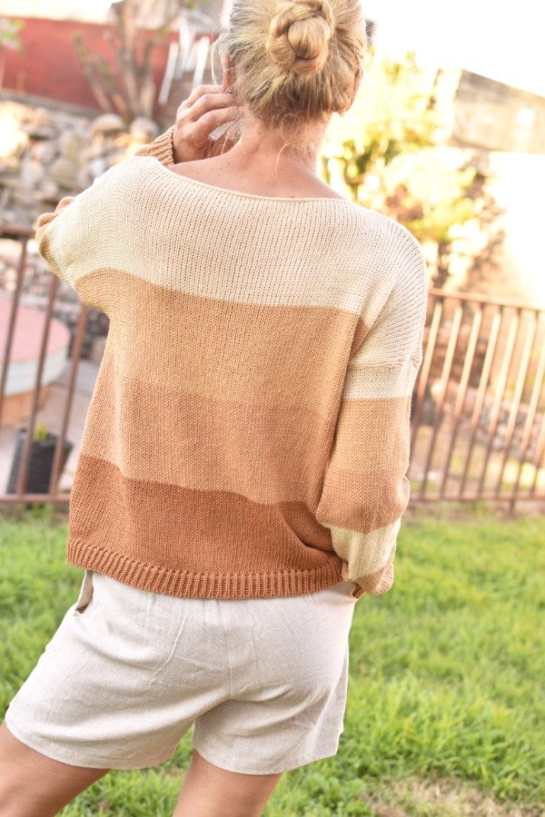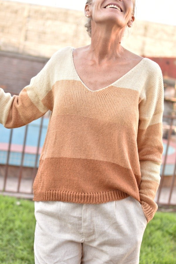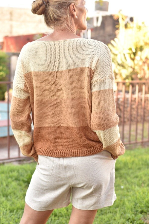 A este hermoso sweater lo combinamos con nuestra bermuda sastrera de lino color crudo y es una BELLEZA de conjunto y muy cómodo!