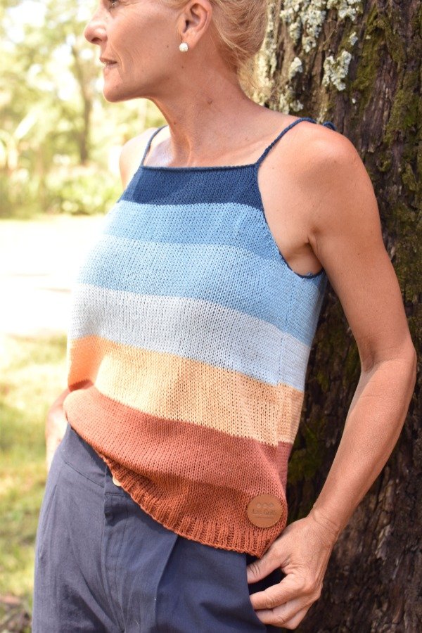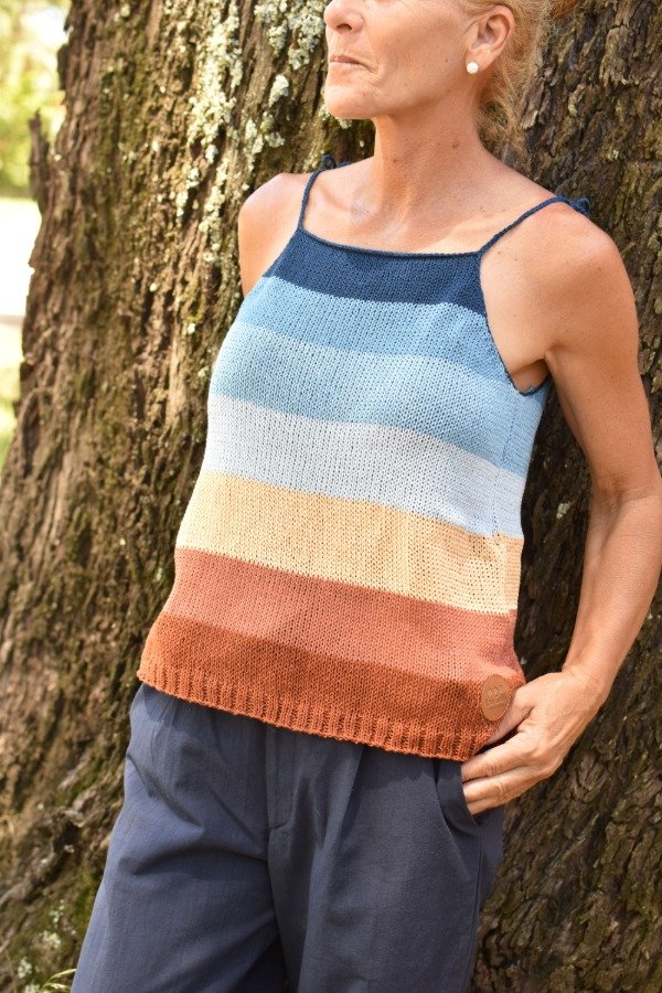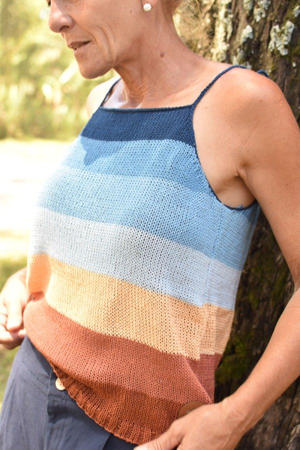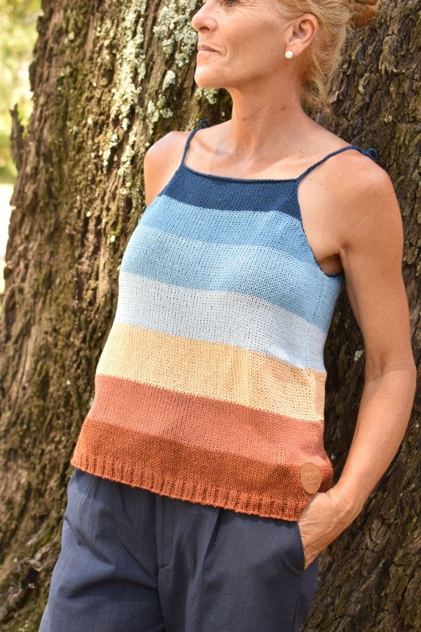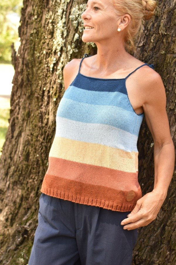 Musculosa tejida con HILO FINO de algodón, es lo más liviano y fresco que tejimos hasta el momento! pensada para los días de verano con un toque Ú N I C O como es en este caso la combinación de COLORES perfecta! Tiene tiras que se atan, osea que son REGULABLES para que si te gusta más escote puedas bajarlo o también para que quede más larguita o cortita, como más te guste.