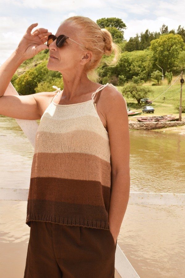 Musculosa tejida con HILO FINO de algodón, es lo más liviano y fresco que tejimos hasta el momento! pensada para los días de verano con un toque Ú N I C O como es en este caso la combinación de COLORES perfecta! Tiene tiras que se atan, osea que son REGULABLES para que si te gusta más escote puedas bajarlo o también para que quede más larguita o cortita, como más te guste.