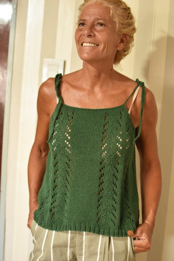 Nueva musculosa tejida con hilo FINO de algodón, es lo más livianito y fresco que vas a encontrar! Reversionamos la muscu ALMA, en este caso haciendo un trabajo hermoso y artesanal de calados únicos! Estas prendas son realmente una obra de arte, además son frescas y cómodas, sueltitas. Tienen tiras que se atan, osea que son REGULABLES: si te gusta más escote puedas bajarlo o también para que quede más larguita o cortita, como más te guste.