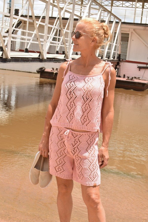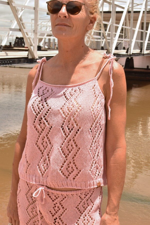 En este caso la modelo tiene el conjunto PERFECTO de musculosa calada + el shorsito calado, sin palabrasssss, un MIL!