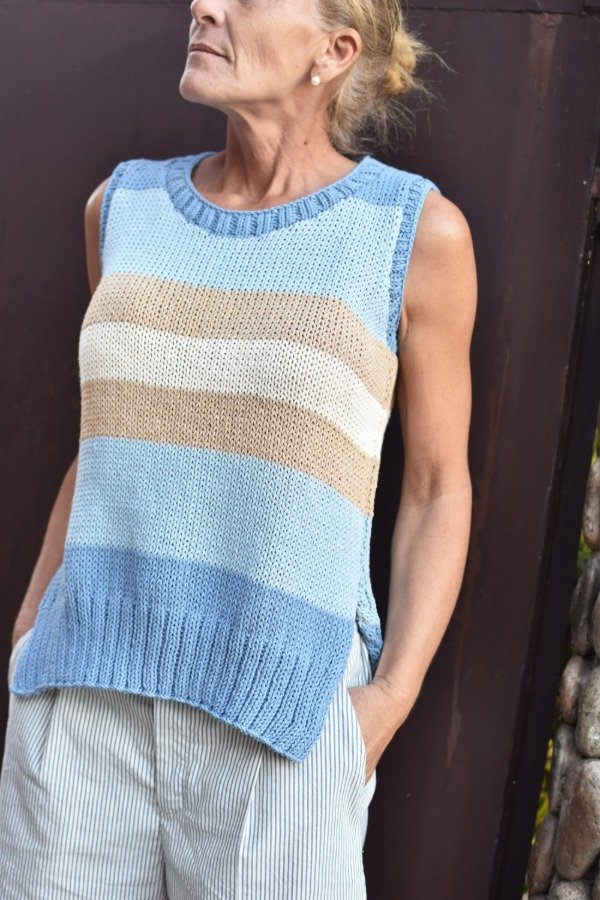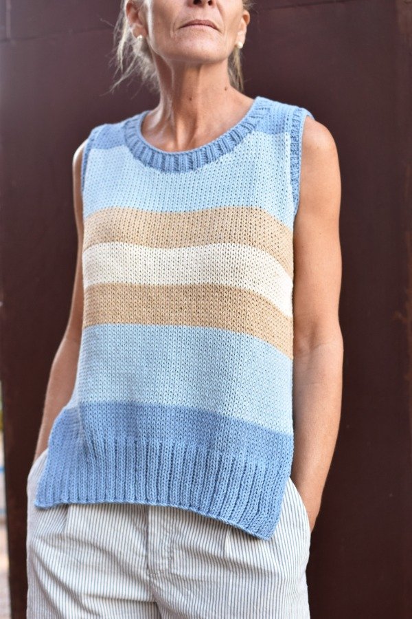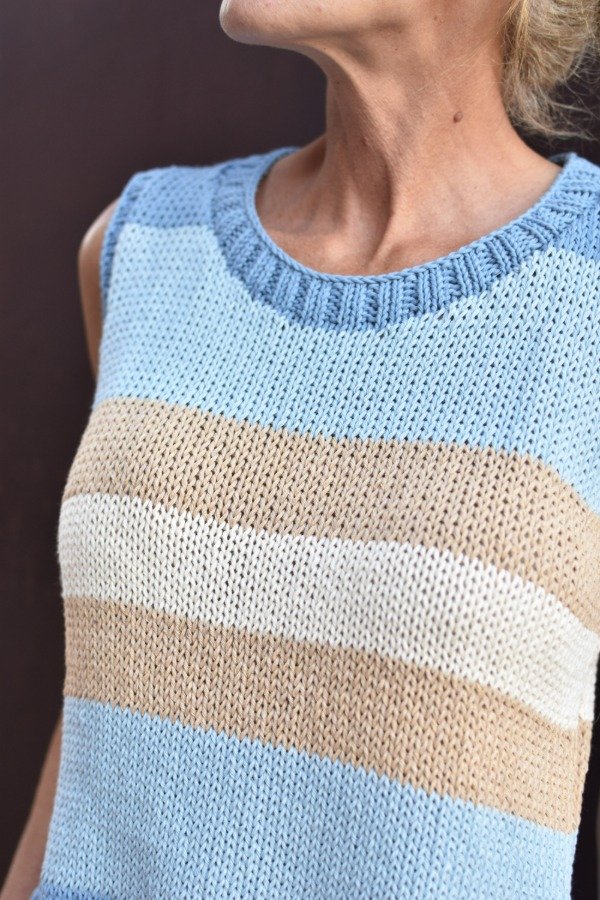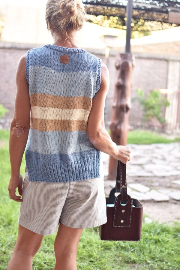 Musculosa tejida con hilo de algodón, tiene escote redondo, elásticos dobles bien anchitos en cintura y es abierta abajo, lo que hace a la prenda muy cómoda y más holgada AMAMOS! Es un modelo más bien larguito. No sólo eso, también le hicimos un detalle de TRENCITAS en los bordes que no puede más. Hermosura única que llegó para quedarse. Las medidas en centímetros son ancho 46 cm, alto de sisa 21 cm, largo total de la prenda 60 cm. Podés comparar con las medidas de alguna musculosa que te guste como te queda, la letra de talle es estimativa, una guía.
