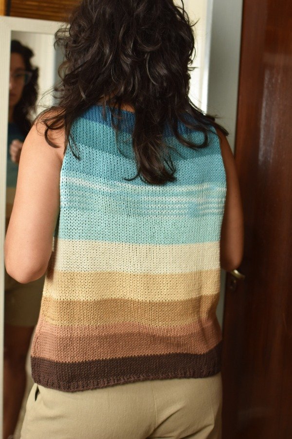 Musculosa tejida en hilo de algodón, es una prenda super cómoda, la parte de abajo es más holgada, disminuyendo hacia arriba y queda muuy hermosa puesta, te viste! Es un modelo larguito. Las medidas en centímetros son sisa a sisa 46 cm (va hasta 96/100 de busto, ya que el hilo tejido se estira, sin deformarse), alto de sisa 19 cm, largo total de la prenda 54 cm aprox. Podés comparar con las medidas de alguna musculosa que te guste como te queda, la letra de talle es estimativa, una guía.