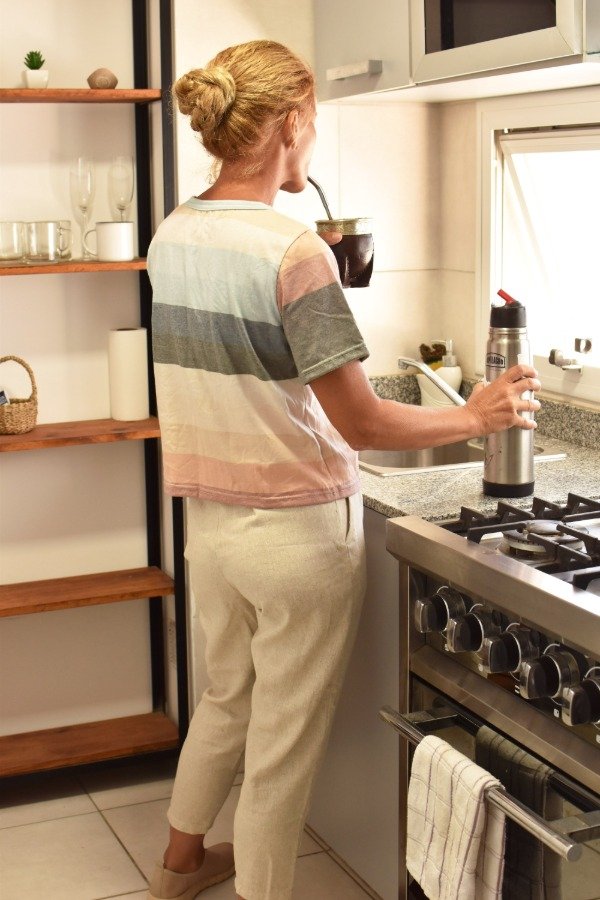 En este caso el pantalón es de LINO color crudo, super liviano y con una caída espectacular.