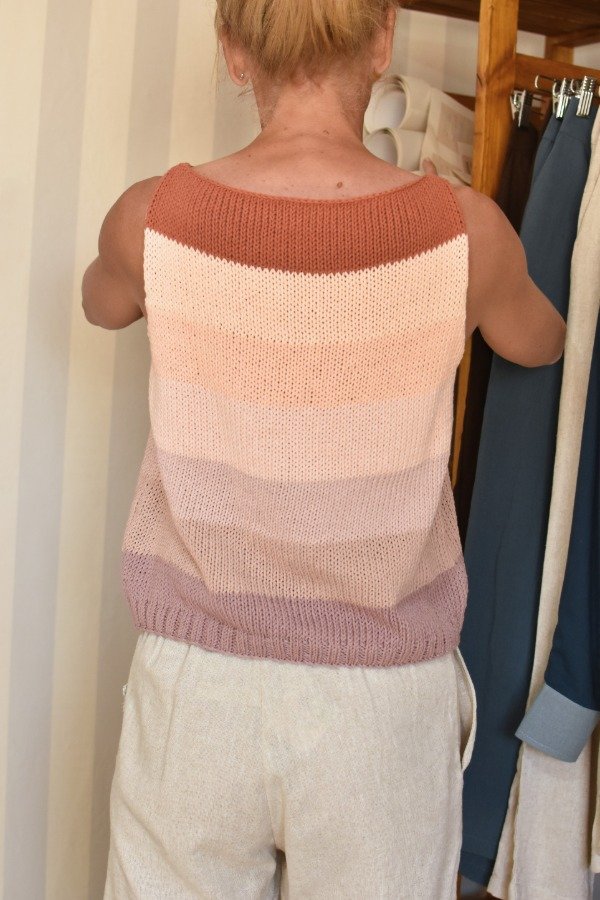 Cada uno está hecho con combinaciones de color PRECIOSAS Y ÚNICAS! Las medidas en centímetros de la prenda colocada sobre una superficie plana son ancho o sisa a sisa 46 cm, largo de sisa 20/21 cm, largo total de la prenda 49 cm aprox. Podés comparar con alguna musculosa que te guste como te queda! La letra de talle es estimativa, una guía.