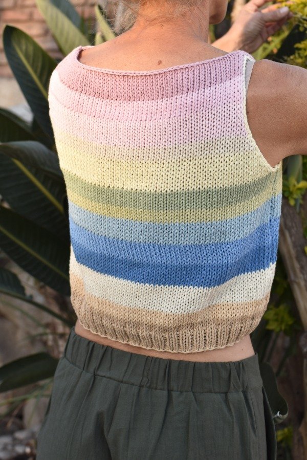 Cada uno está hecho con combinaciones de color PRECIOSAS Y ÚNICAS! Las medidas en centímetros de la prenda colocada sobre una superficie plana son ancho o sisa a sisa 43 cm, largo de sisa 19 cm, largo total de la prenda 41 cm aprox. Podés comparar con alguna musculosa que te guste como te queda! La letra de talle es estimativa, una guía.