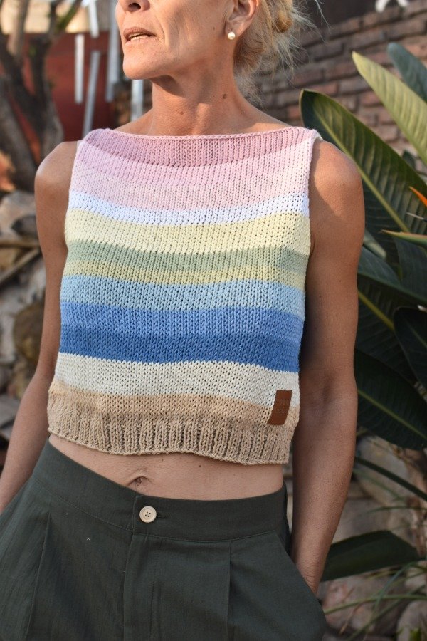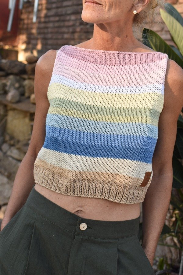 Top tejido en hilo de algodón con unas vueltitas de elástico en cintura, tiene un calce super cómodo y queda muy hermoso puesto.