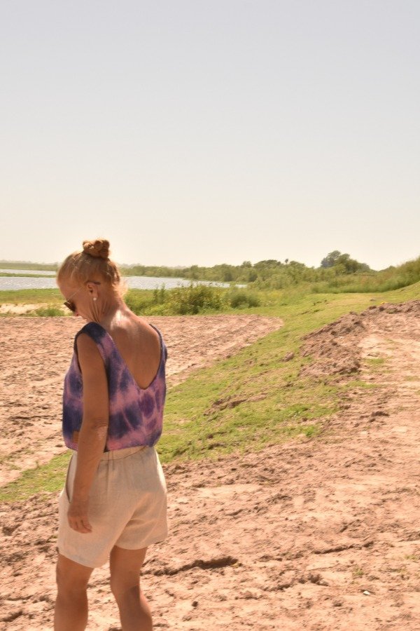 Al ser teñido artesanalmente, este top puede llegar a desteñir un poco (aunque previamente ya lavamos y sacamos excedente de tintura) por lo que recomendamos lavar sólo o con prendas de colores similares.