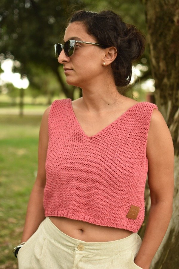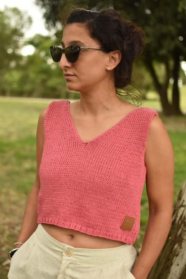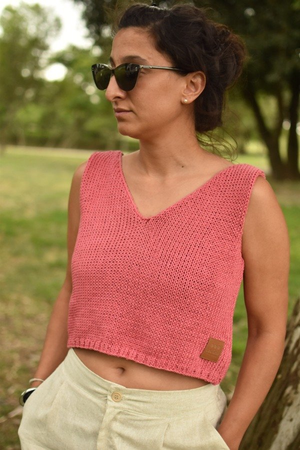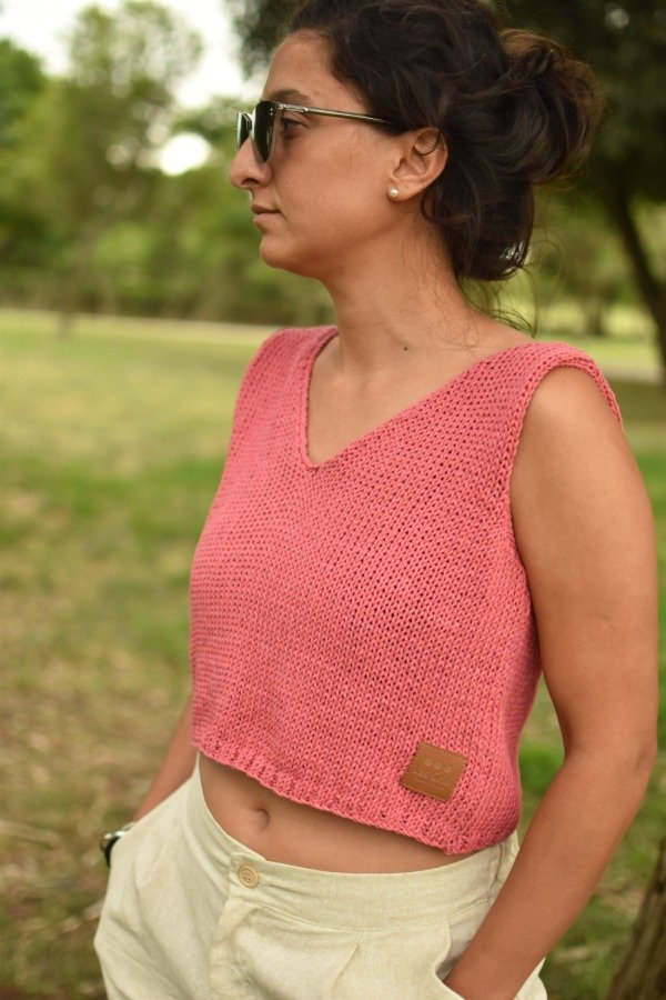 Es una prenda CORTITA pensada para usar con algún tiro alto, como en las fotos que la combinamos con nuestra bermuda sastrera de lino color crudo del más allá, es una bomba de conjunto!