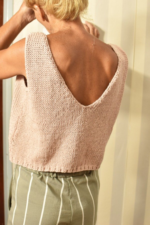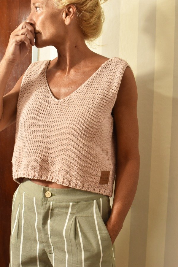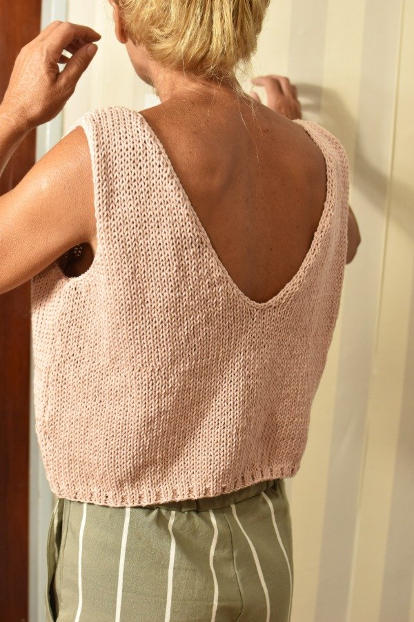Top tejido en hilo de algodón, escote en V en delantera y escote un poquito más redondito y pronunciado en espalda que queda precioso! Tiene unas vueltitas de elástico en cintura. Un básico que no puede faltarte, queda bien con TODO!!! Las medidas en centímetros son sisa a sisa 50 cm, alto de sisa: 20 cm, largo total de la prenda 44 cm aprox. Podés comparar con las medidas de algún top/musculosa que te guste como te queda! La letra de talle es estimativa, una guía.