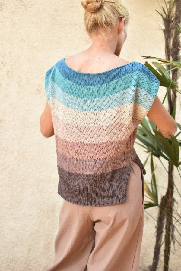 Remera tejida con hilo de algodón premiun, tiene escote bote. Manguitas, elásticos anchos en cintura con tajos laterales que quedan PRECIOSOS! Es un poquito más larguita atrás que adelante. Los colores de esta prenda son de otro mundo! Las medidas son sisa a sisa o ancho: 50 cm, largo de la prenda espalda 57 cm y largo delantera 51 cm aprox, podés comparar las medidas con las de alguna remera que te guste como te queda! Ideal para usar con un tiro alto como nuestro nuevo palazzo del más allá :)