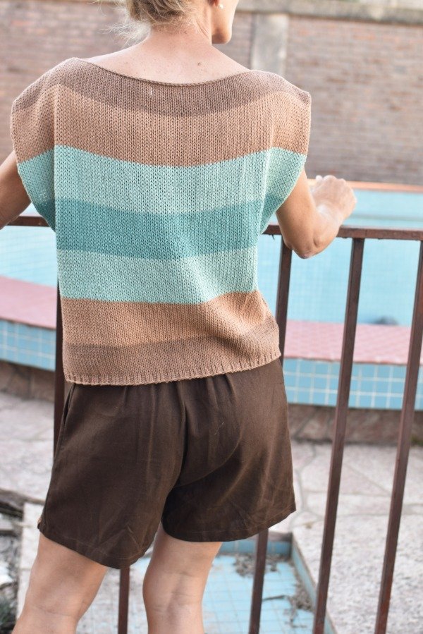 Combinamos la remera con nuestra bermuda sastrera de lino color CHOCOLATE, y el resultado es un precioso conjunto.
