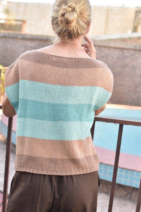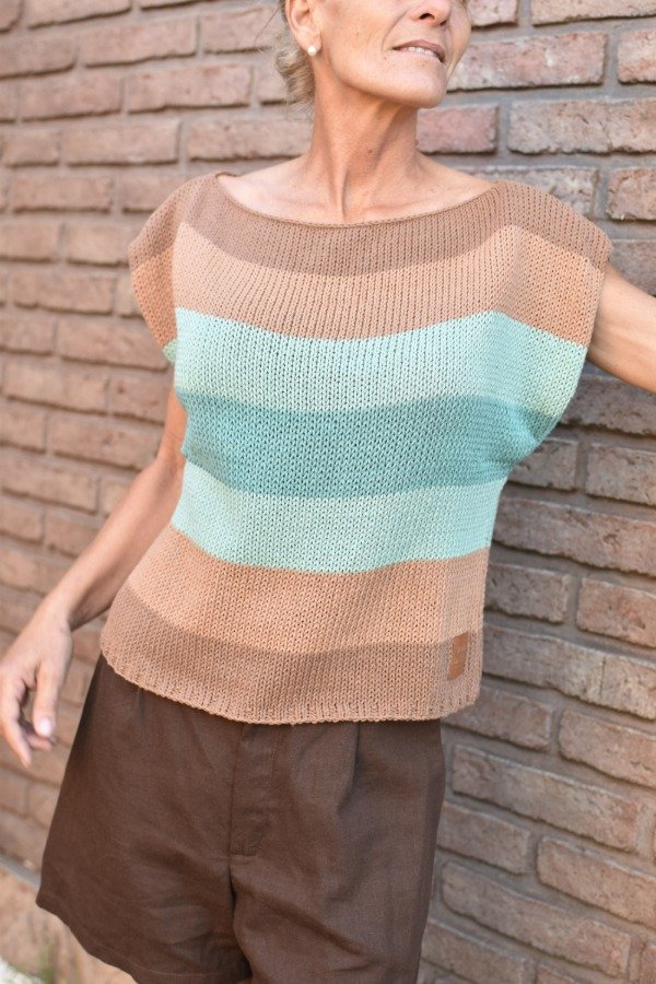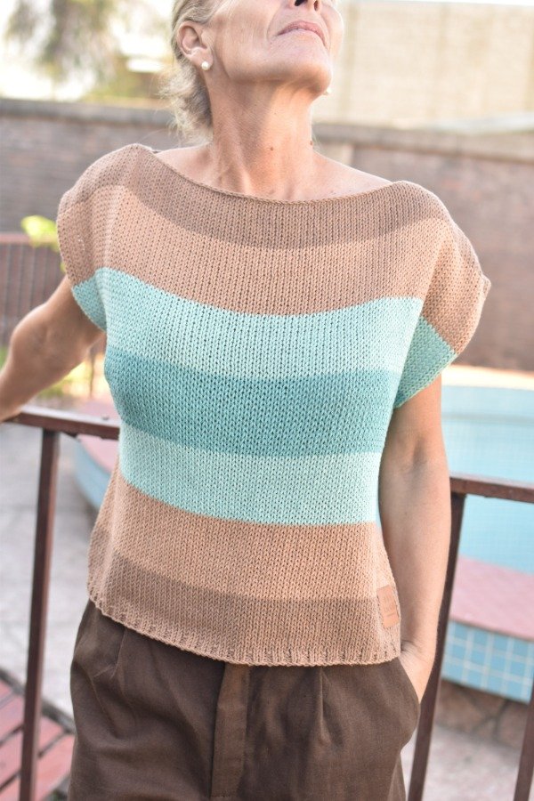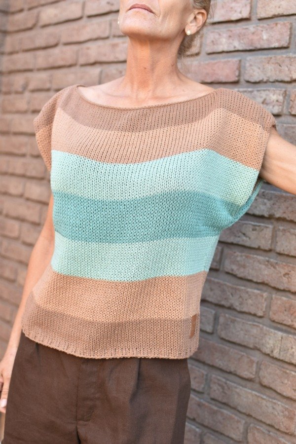 Remera tejida en hilo de algodón, elástico en cintura y manguitas. Cuello bote que queda espectacular puesto! Las medidas son sisa a sisa o ancho: 53 cm, largo de la prenda 54 cm, podés comparar las medidas con las de alguna remera que te guste como te queda! La letra de talles es estimativa, una guía.