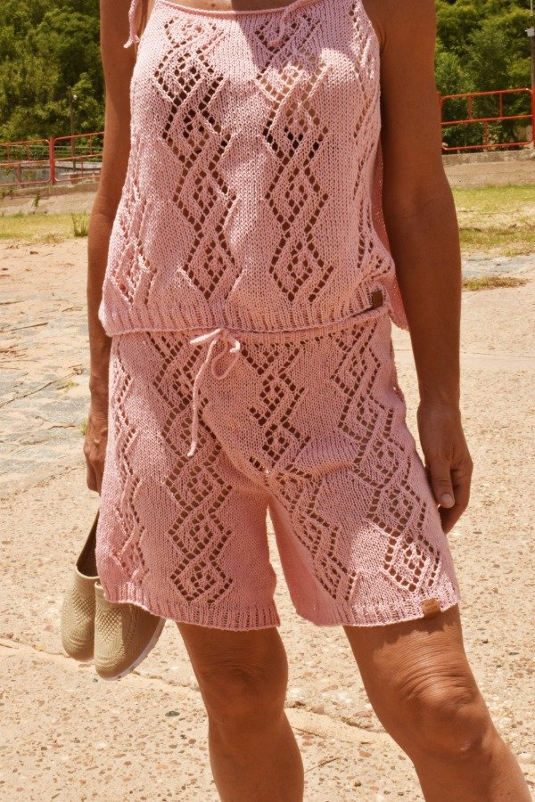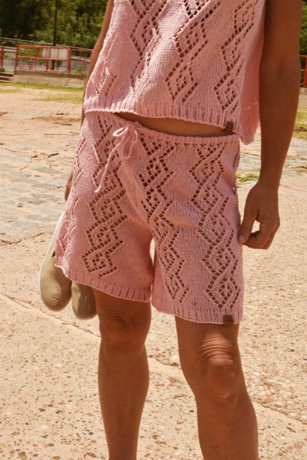 Felices de traerles esta nueva creación! Short tejido con hilo FINO de ALGODÓN, de los más livianito y fresco del planeta. Hecho con un diseño calado artesanalmente. Tiene una tirita también tejida para ajustar la cintura y va en conjunto con nuestro top celeste. Es una bomba!!! ÚNICO. Este color está muy muy en tendencia! Espectacular para el verano, muy muy lindo y fresco.