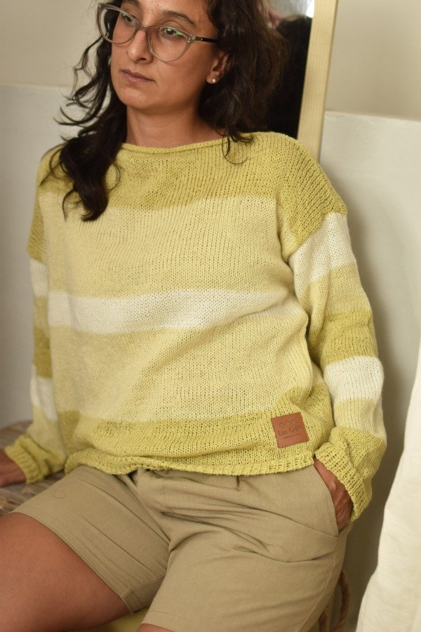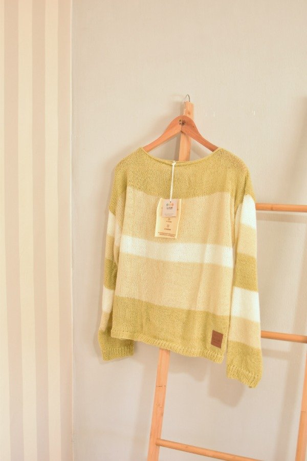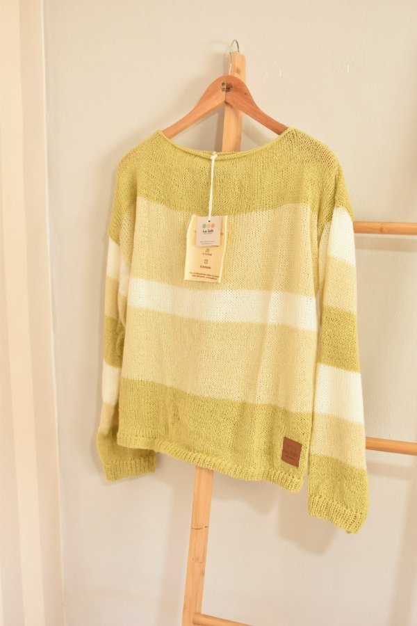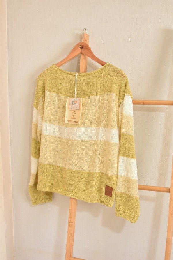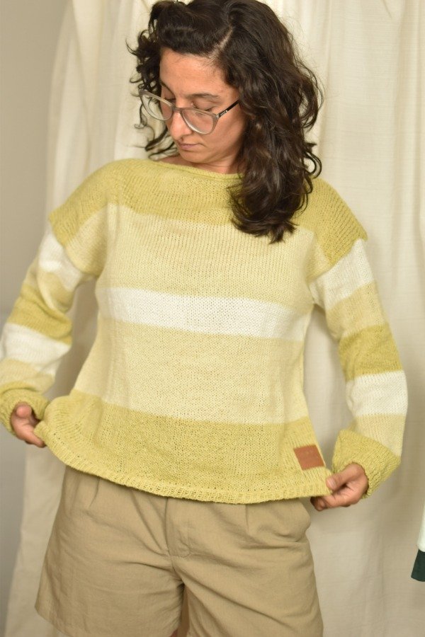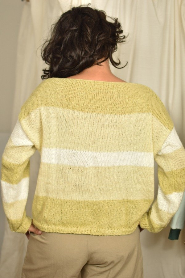 Sweater tejido en lana fina super suavecita, cuello bote, corte y mangas rectas con detalle de elástico en cintura y puños. Este modelo tiene diseño de mangas distinto al de espalda y delantera haciendo a la prenda más única de la que ya es! Diseño en degradé p e r f e c t o. Las medidas en centímetros son ancho o sisa a sisa 63 cm, largo de la prenda 54 cm aprox. Podes tomarle las medidas a un sweater que te guste como te queda y compararlas :) La letra de talle es estimativa, una guía.