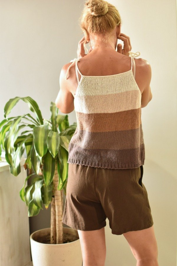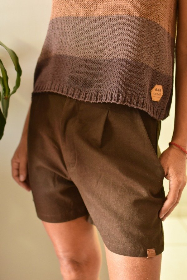 En este caso la bermuda es de LINO color chocolate, super liviana y con una caída espectacular.