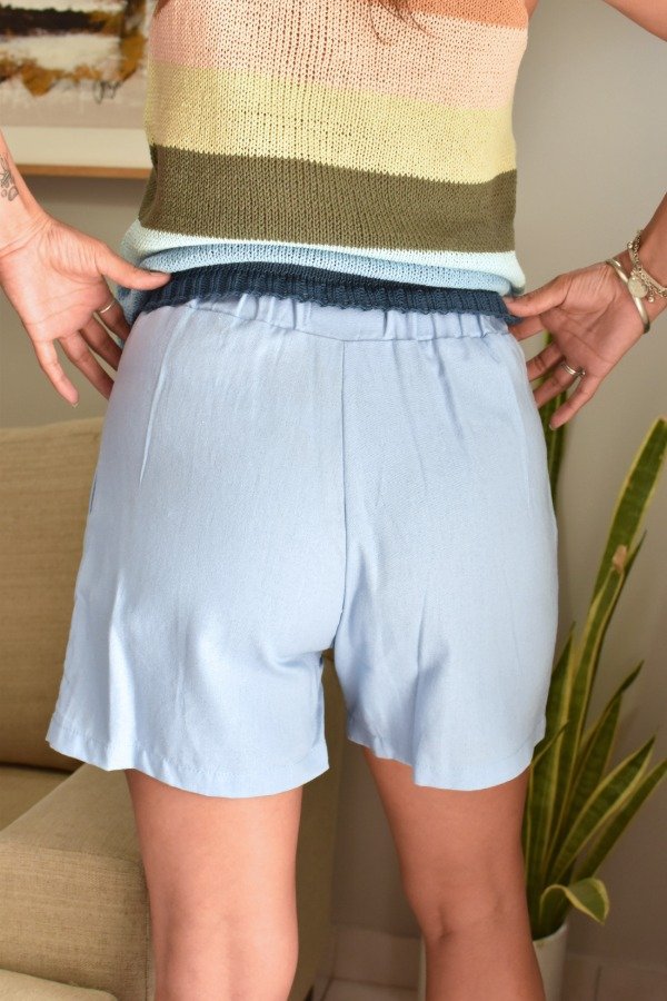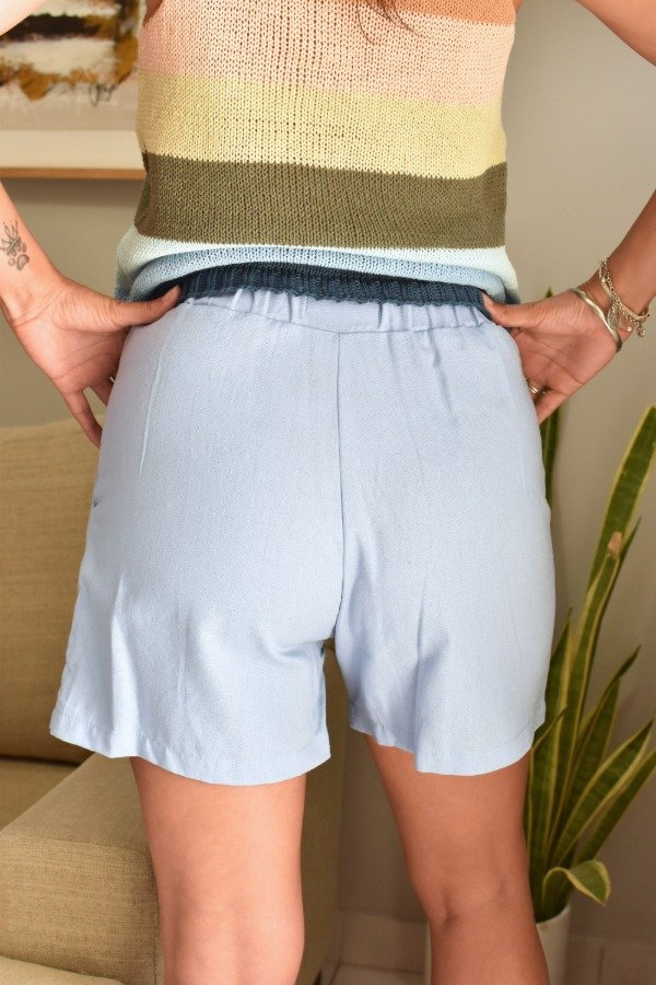 En este caso la bermuda es de LINO color celeste , super liviana y con una caída espectacular.
