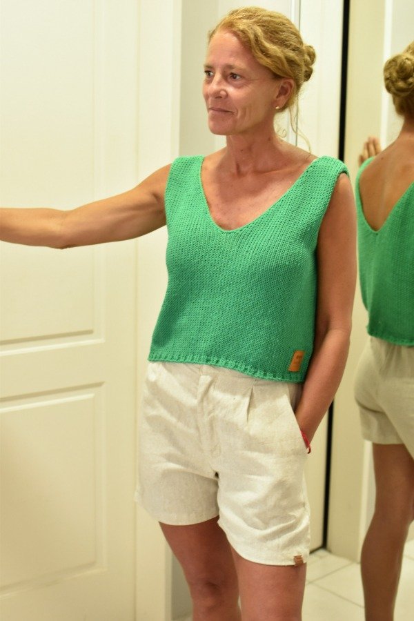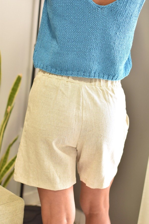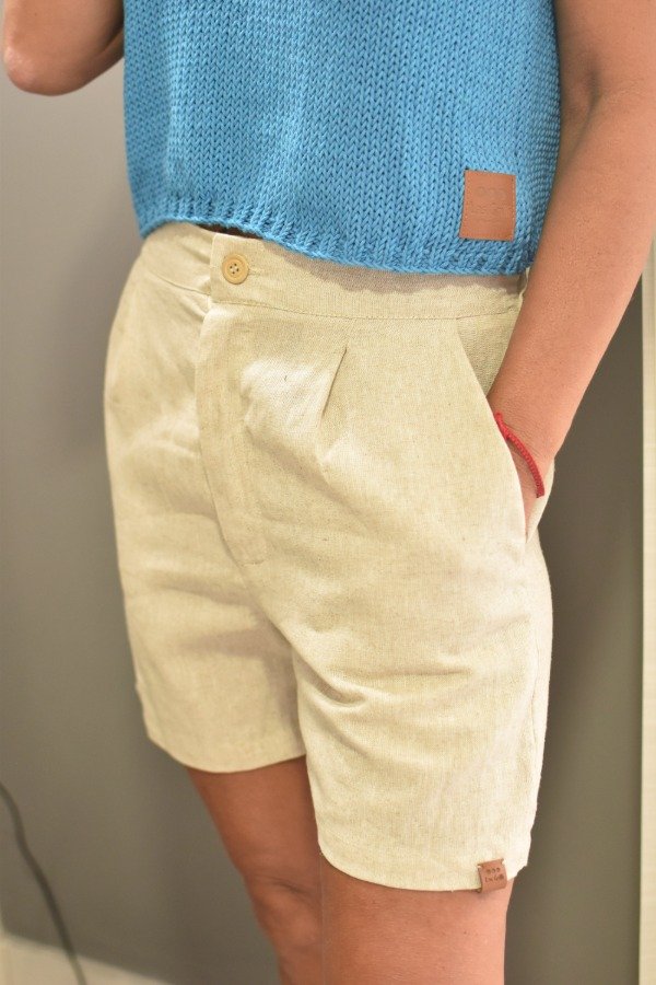 En este caso la bermuda es de LINO color crudo, super liviana y con una caída espectacular.
