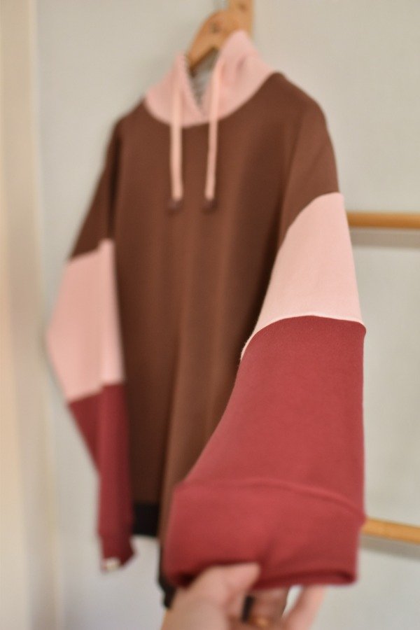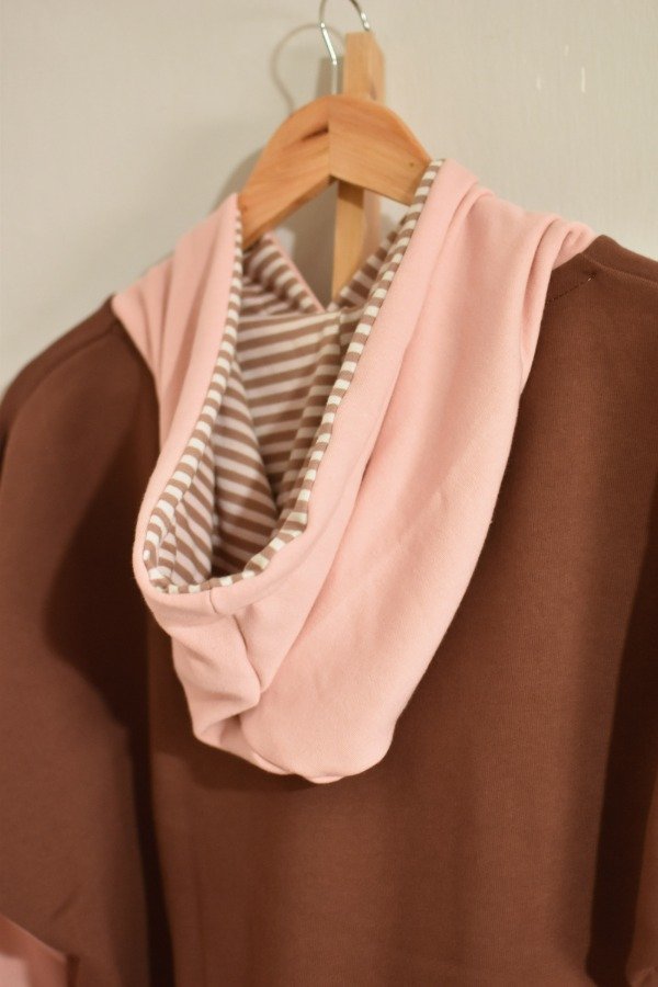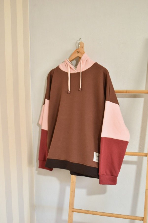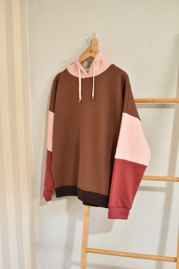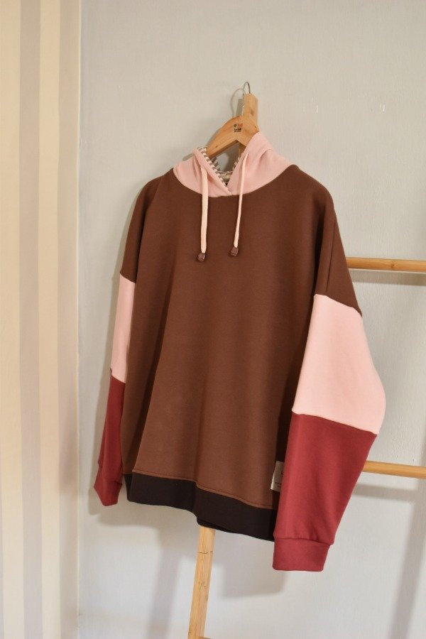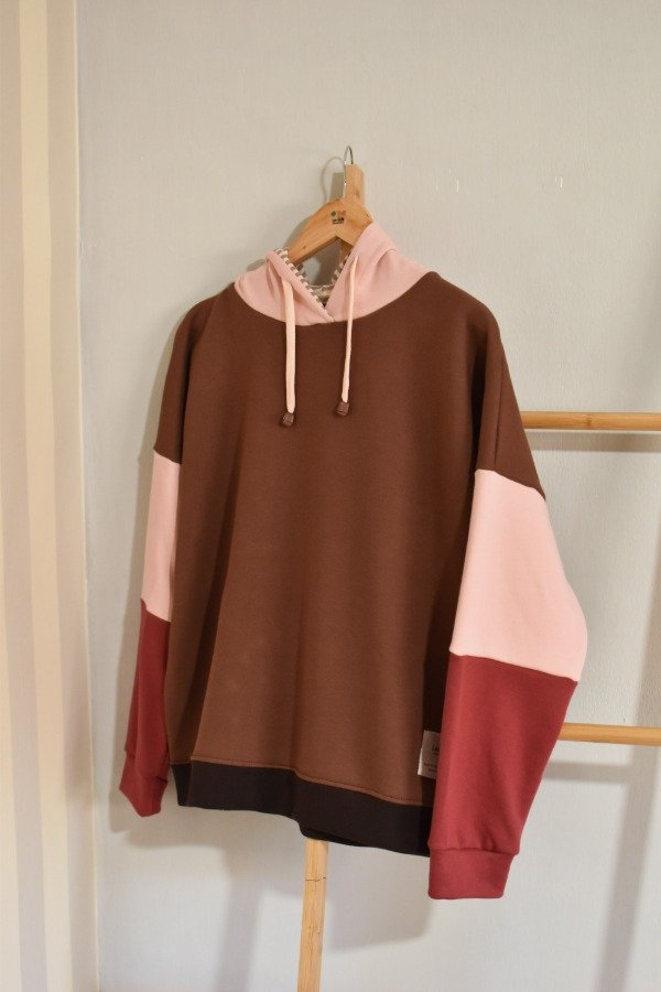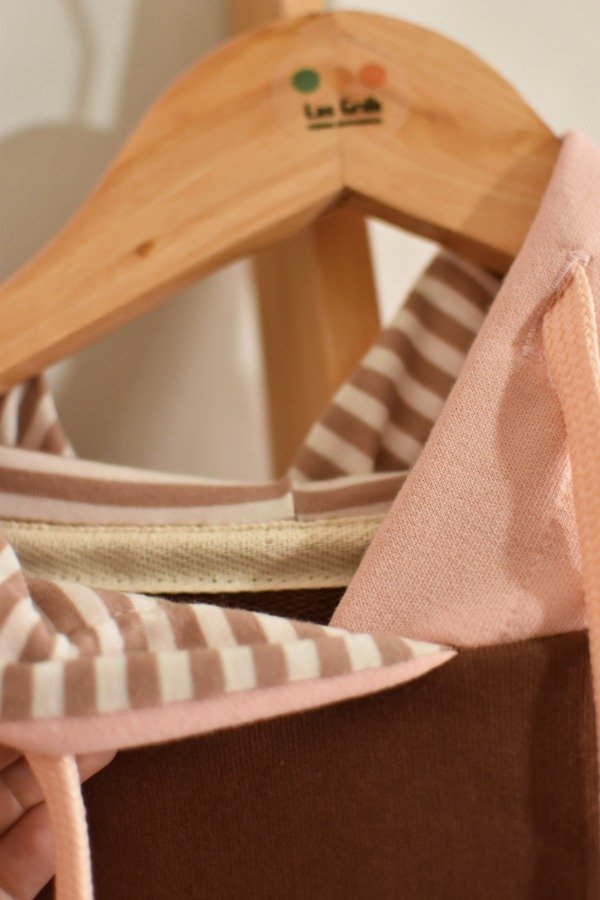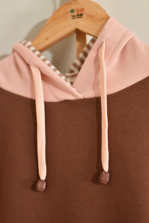Nueva versión con tapa costura de algodón más forro interno en capucha al tono o contrastando que le da más detalle a la prenda, bien pro. En este caso en particular el forro es de algodón rayado que no puede quedar tan tan hermoso y combinar taaaan bien con los colores!