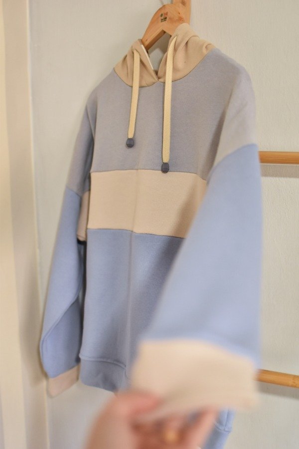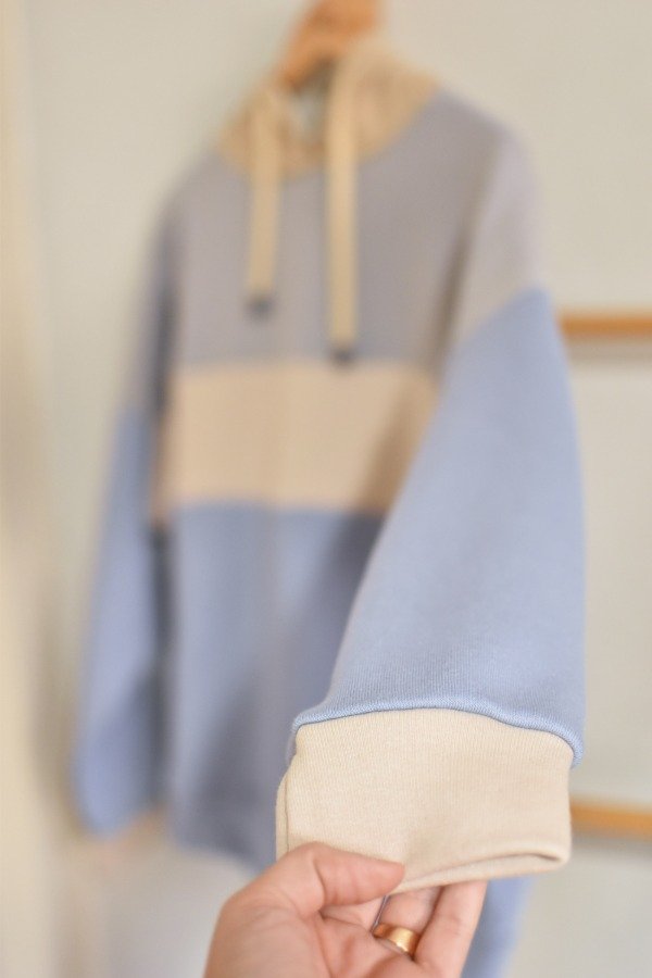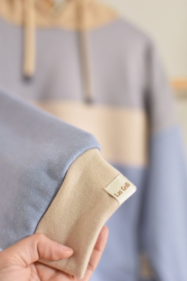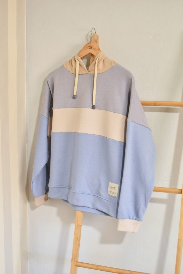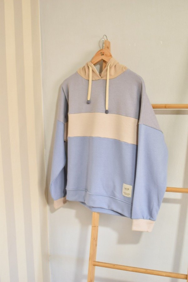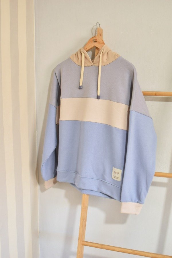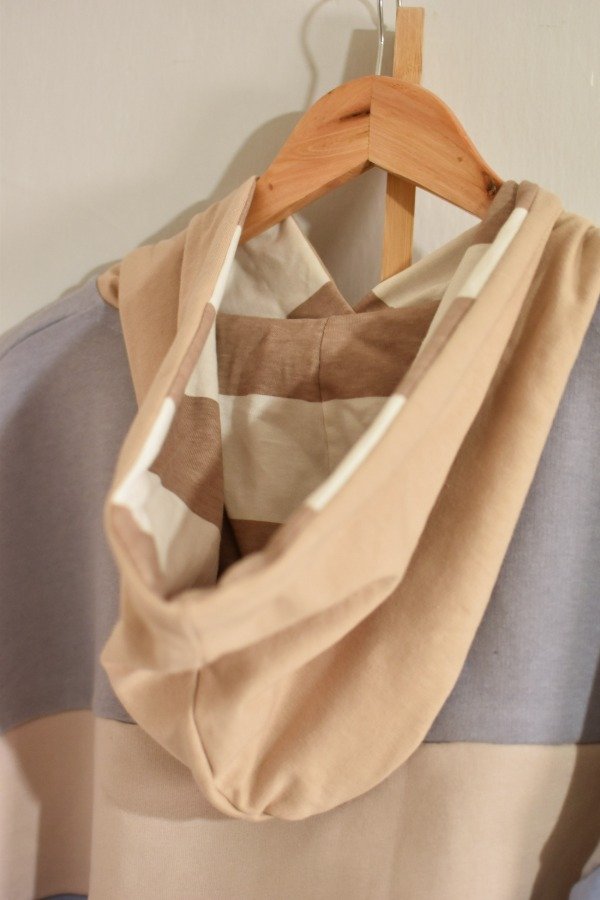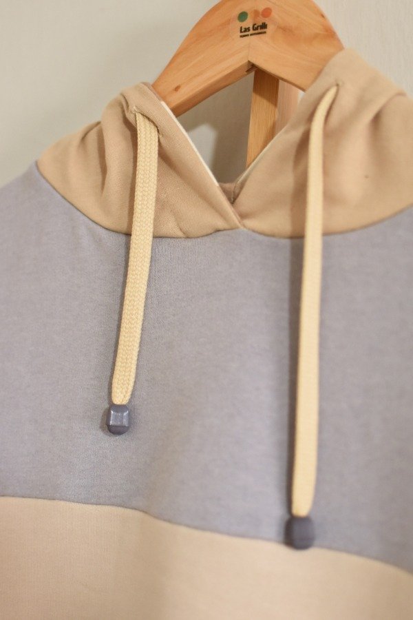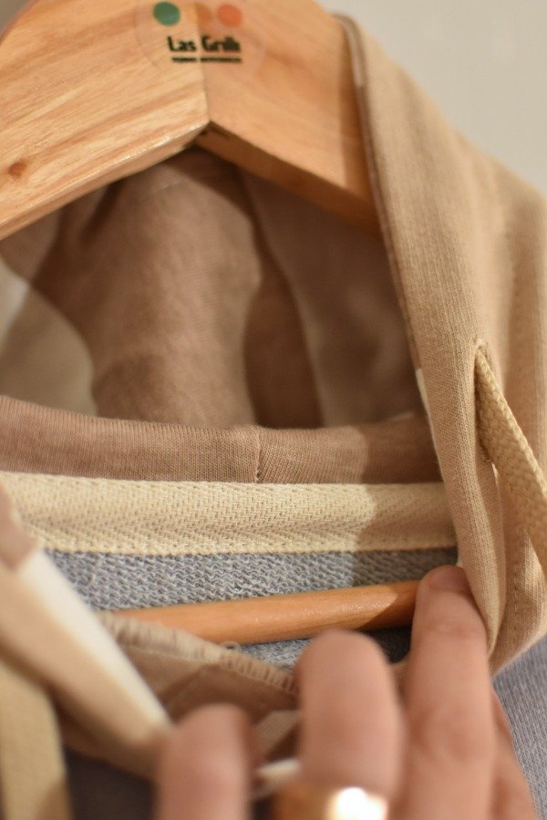 Nueva versión con tapa costura de algodón más forro interno en capucha al tono o contrastando que le da más detalle a la prenda, bien pro. En este caso en particular el forro es de algodón rayado que no puede quedar tan tan hermoso y combinar taaaan bien con los colores!