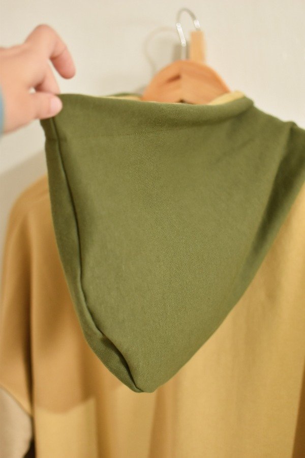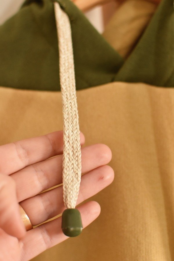 La capucha es super amplia y tiene tiras y trabas al tono o haciendo un contraste precioso.