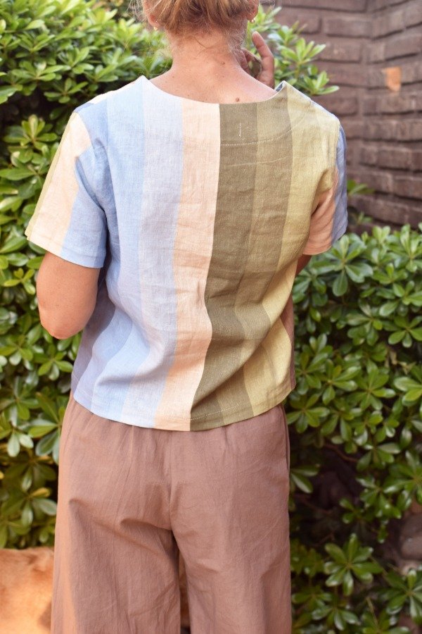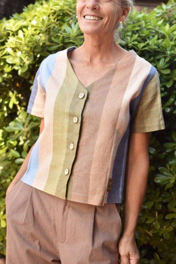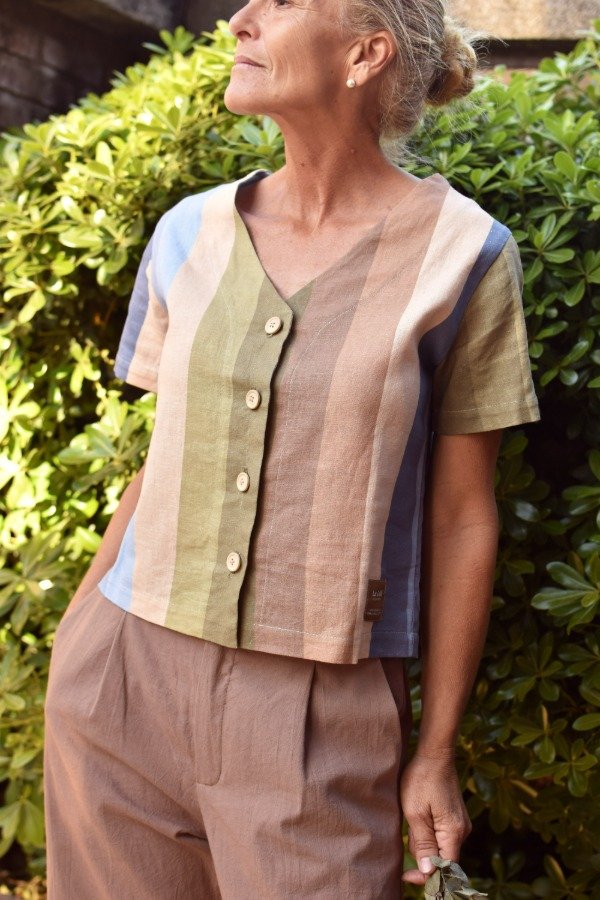 Felices de presentarles el nuevo miembro de la familia! Camisa mangas cortas, con estampa exclusiva de Las Grilli, hecha desde cero por nasotras! Obviamente no podía ser otro más qué un patrón rayado, peeero con nuestros colores hermosos y únicos. Al ser una estampa no lineal, cada camisa sale distinto y eso nos encanta :) Tiene botoncitos de madera haciendo juego con todos nuestros pantalones, b e l l e z aaa delicada.