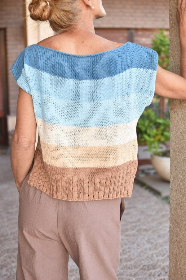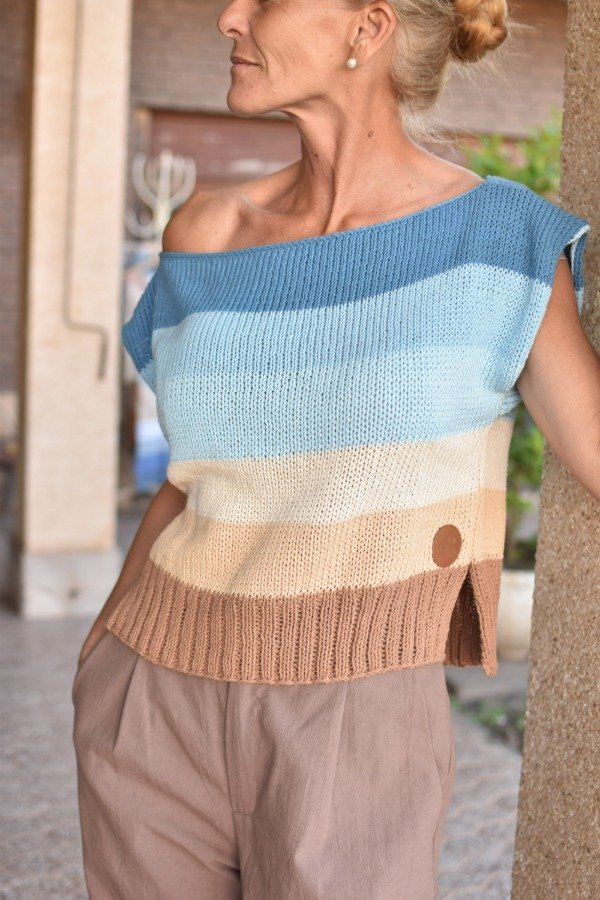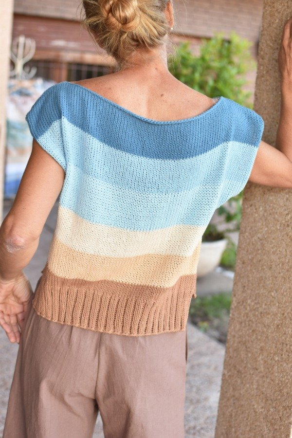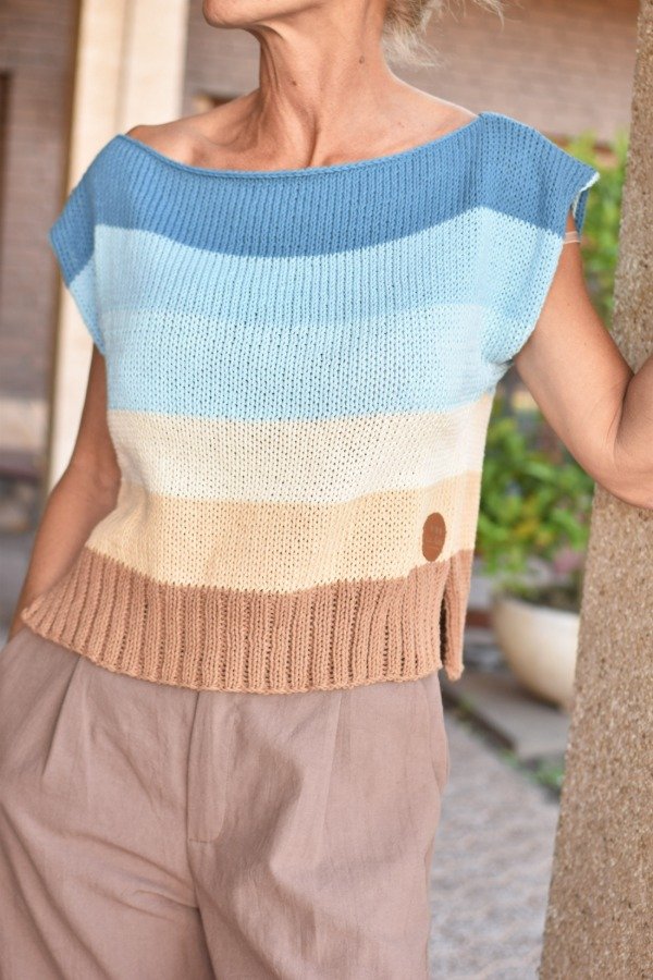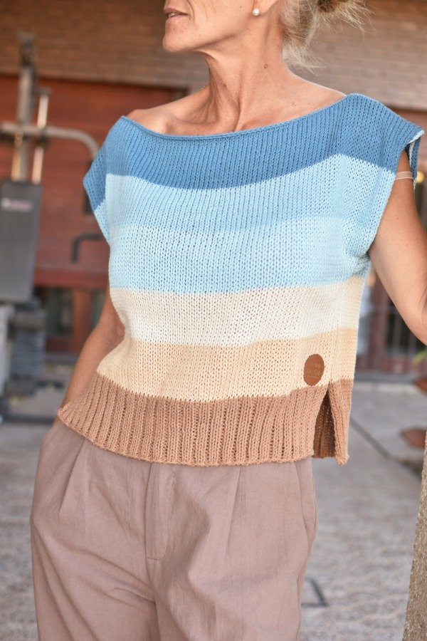 Remera tejida con hilo de algodón premiun, tiene escote bote. Manguitas, elásticos anchos en cintura con tajos laterales que quedan PRECIOSOS! Es un poquito más larguita atrás que adelante. Los colores de esta prenda son de otro mundo! Las medidas son sisa a sisa o ancho: 50 cm, largo de la prenda espalda 49 cm y largo delantera 47 cm aprox, podés comparar las medidas con las de alguna remera que te guste como te queda! Ideal para usar con un tiro alto como nuestro nuevo palazzo del más allá :)