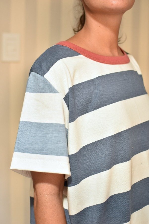 Remeras de algodón 100%, en esta ocasión combinamos colores del mismo textil rayado dando como resultado una NUEVA REMERA distinta y ORIGINAL, que es a lo que apuntamos cuando diseñamos nuestras prendas.