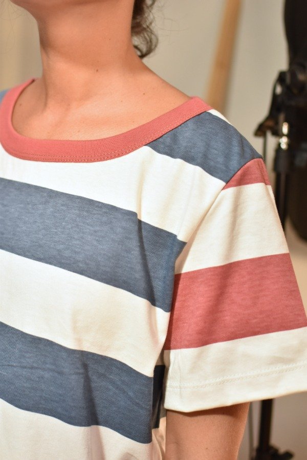 Remeras de algodón 100%, en esta ocasión combinamos colores del mismo textil rayado dando como resultado una NUEVA REMERA distinta y ORIGINAL, que es a lo que apuntamos cuando diseñamos nuestras prendas.