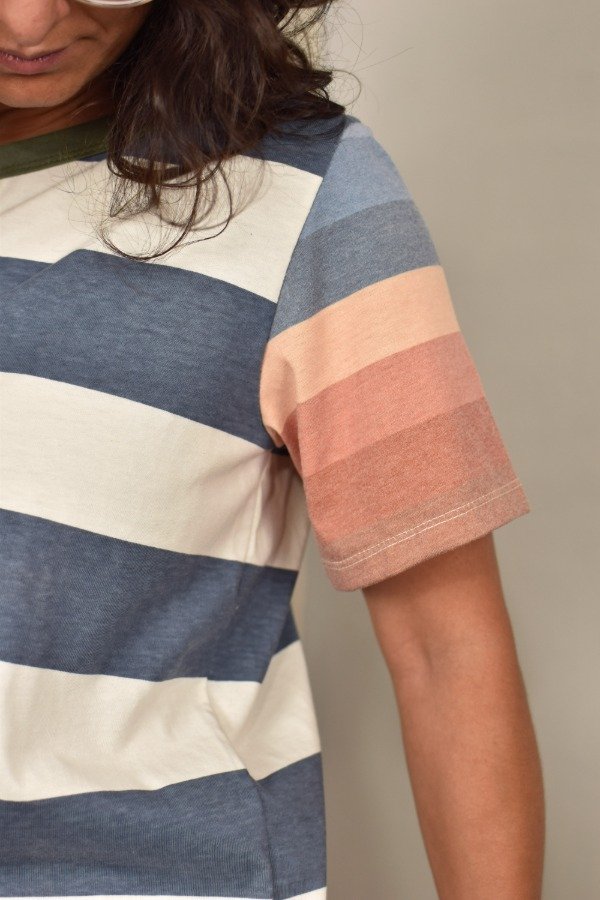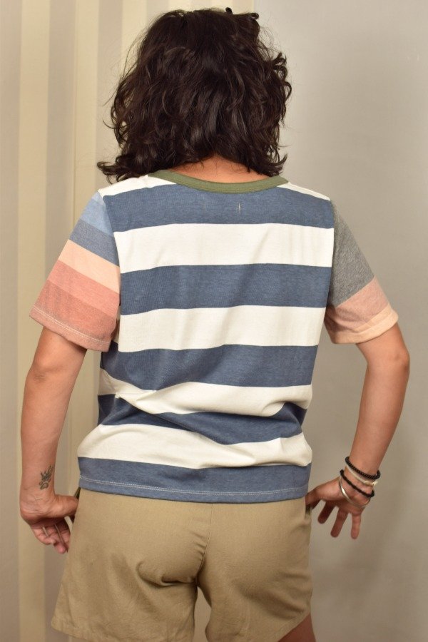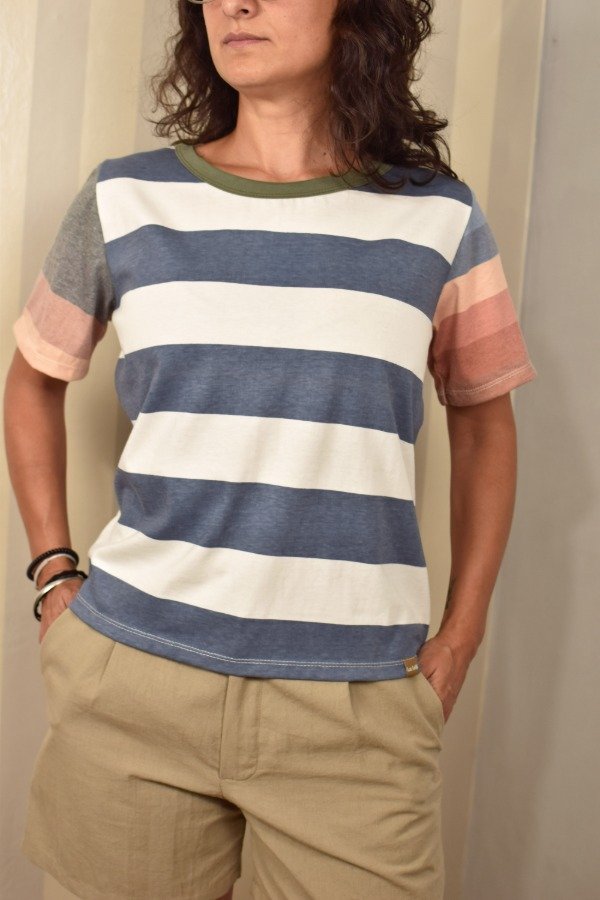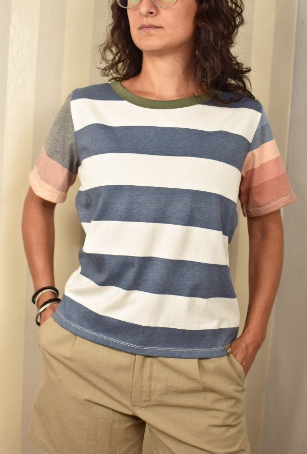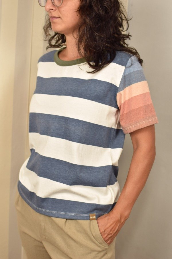 Felices de presentarles nuestras nuevas remeras, hechas a partir de los sobrantes de nuestras estampas propias, donde tratando de reutilizar el mayor material posible, sacamos de los residuos mangas que mezclamos con textiles rayados más "clásicos" para crear una NUEVA REMERA totalmente distinta, ÚNICA E IRREPETIBLE!