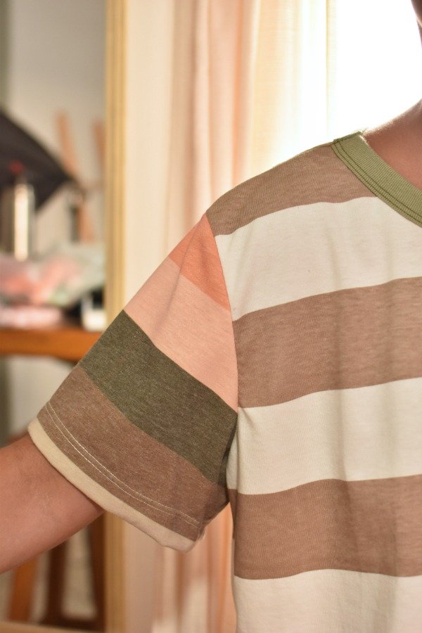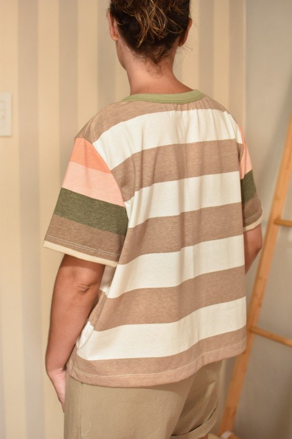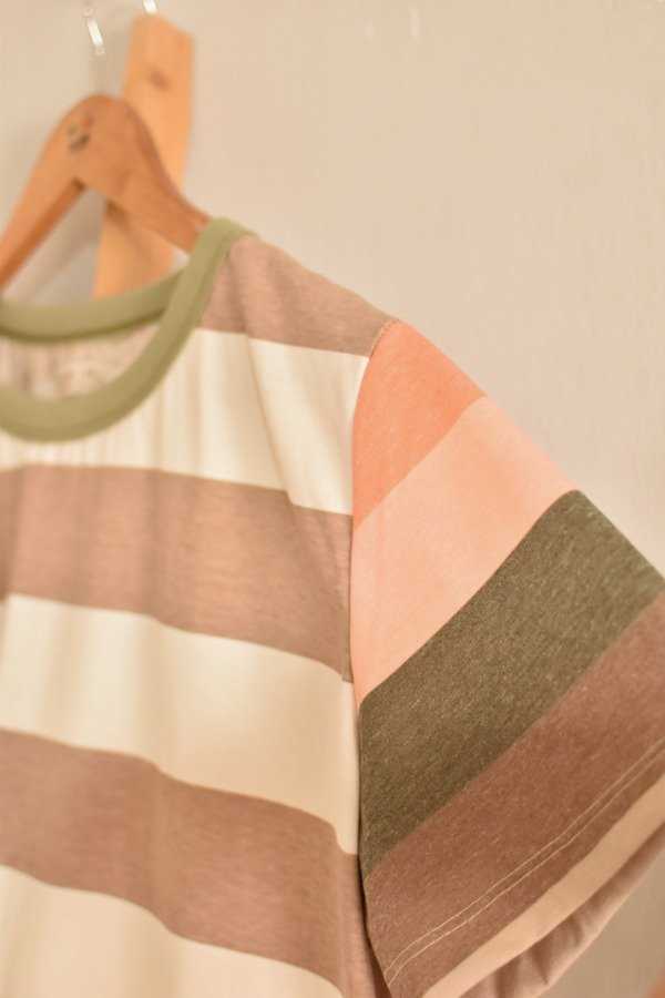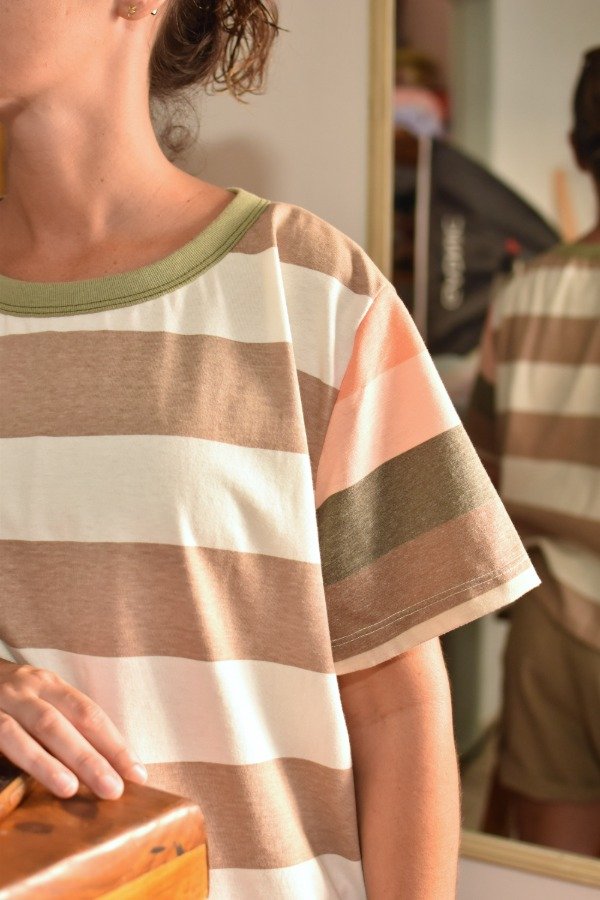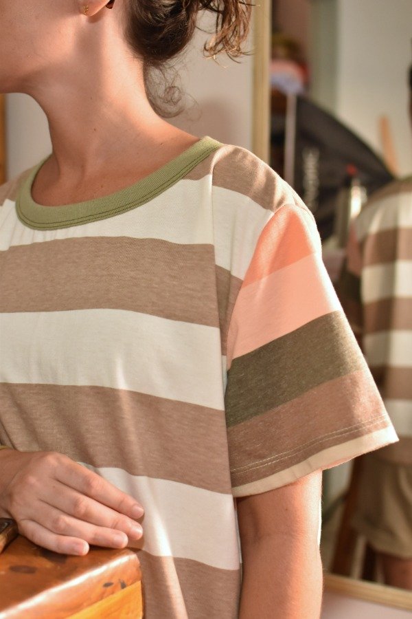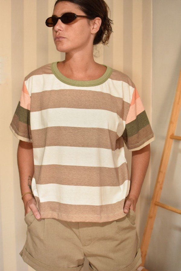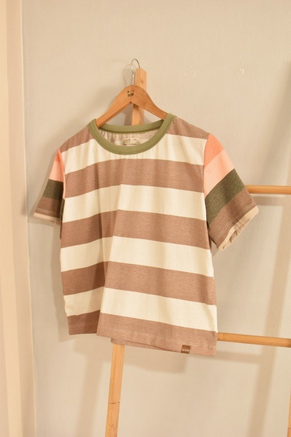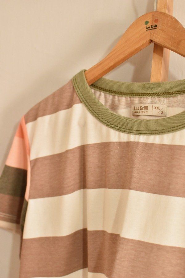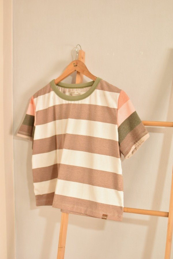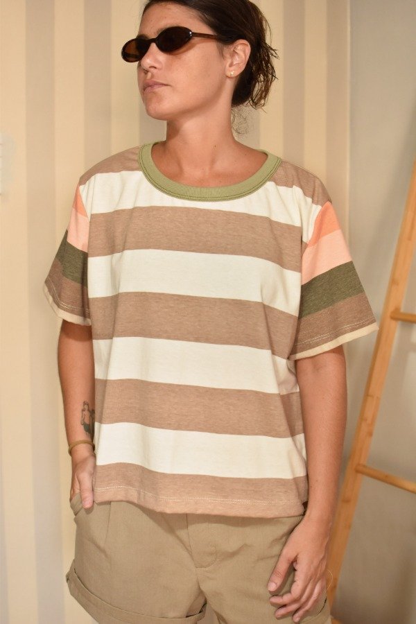 Remeras de algodón 100%, hechas a partir de los sobrantes de nuestras estampas propias, donde tratando de reutilizar el mayor material posible, sacamos de los residuos mangas que mezclamos con textiles rayados más "clásicos" para crear una NUEVA REMERA totalmente distinta, ÚNICA E IRREPETIBLE!