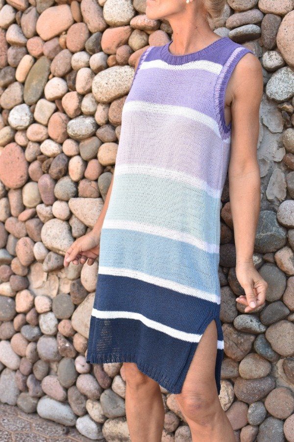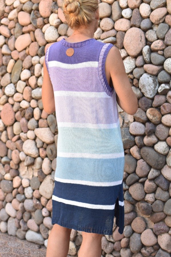 Nuevo vestido! Tejido con hilo fino de algodón, lo más liviano y suave que hay! Tiene escote redondo, elásticos en cuello y sisa que le dan un toque más formal y clásico, peero al mismo tiempo con colores únicos! Es un modelo recto y con tajos laterales que tanto amamos que hacen que sea muy muy cómodo y fresco. Las medidas en centímetros son sisa a sisa 48 cm, alto de sisa 21 cm, ancho de cadera 52 cm (contorno de cadera 104 aprox), largo total de la prenda 92 aprox. Podés comparar con la medidas de algún vestido que te guste como te queda! La letra de talle es estimativa, una guía.